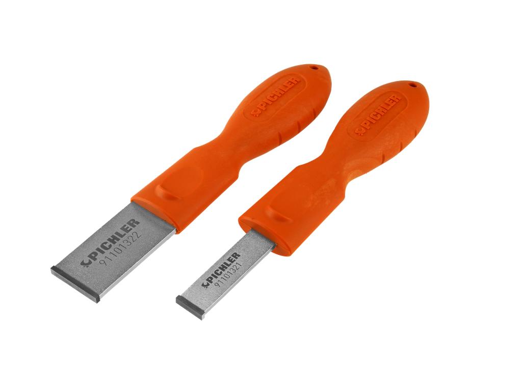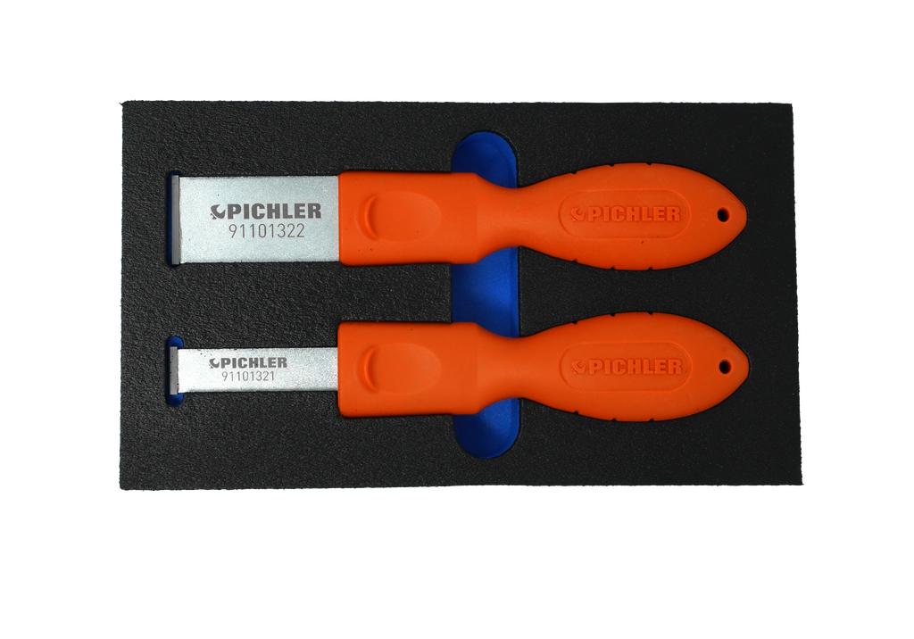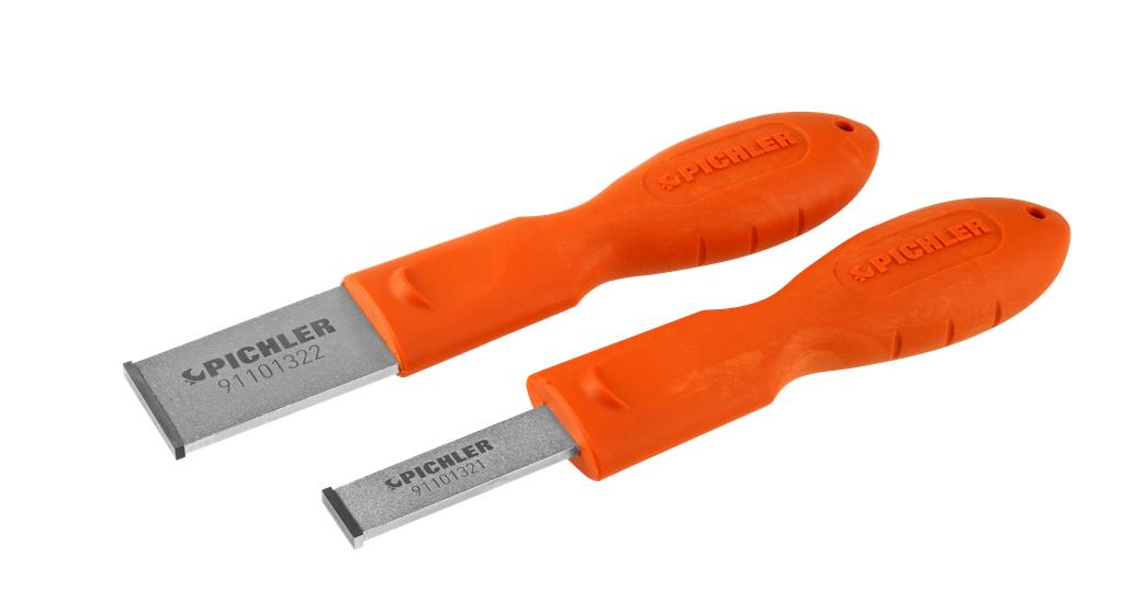Carbide scraper for the safe and effective removal of coarse and stubborn seal residue and dirt from vehicle add-on parts. The carbide blade has 4 scraping edges. The ergonomic handle has been designed to allow the user to exert appropriate force on the blade when pushing and pulling.
