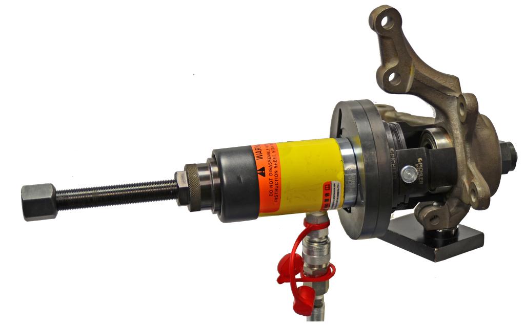 At the base plate of the distance sleeve the diameter can be adjusted according to the wheel bearing housing. The different top parts are selected depending on the shape of the wheel bearing housing and installed on the distance sleeve. Additionally the top parts can be shifted separately on the guide. Thus the distance sleeve is optimally adjustable to the wheel bearing housing shape.