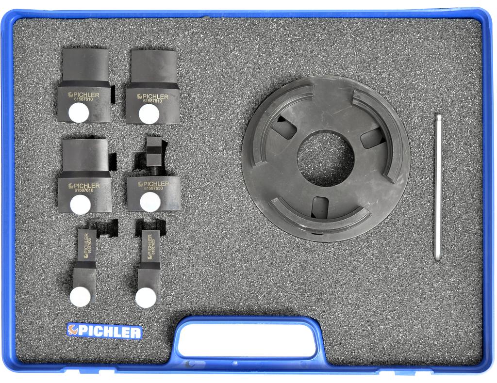 Adjustable distance sleeve with three pairs of top parts used in addition to the wheel bearing tools or for use on the bench press.