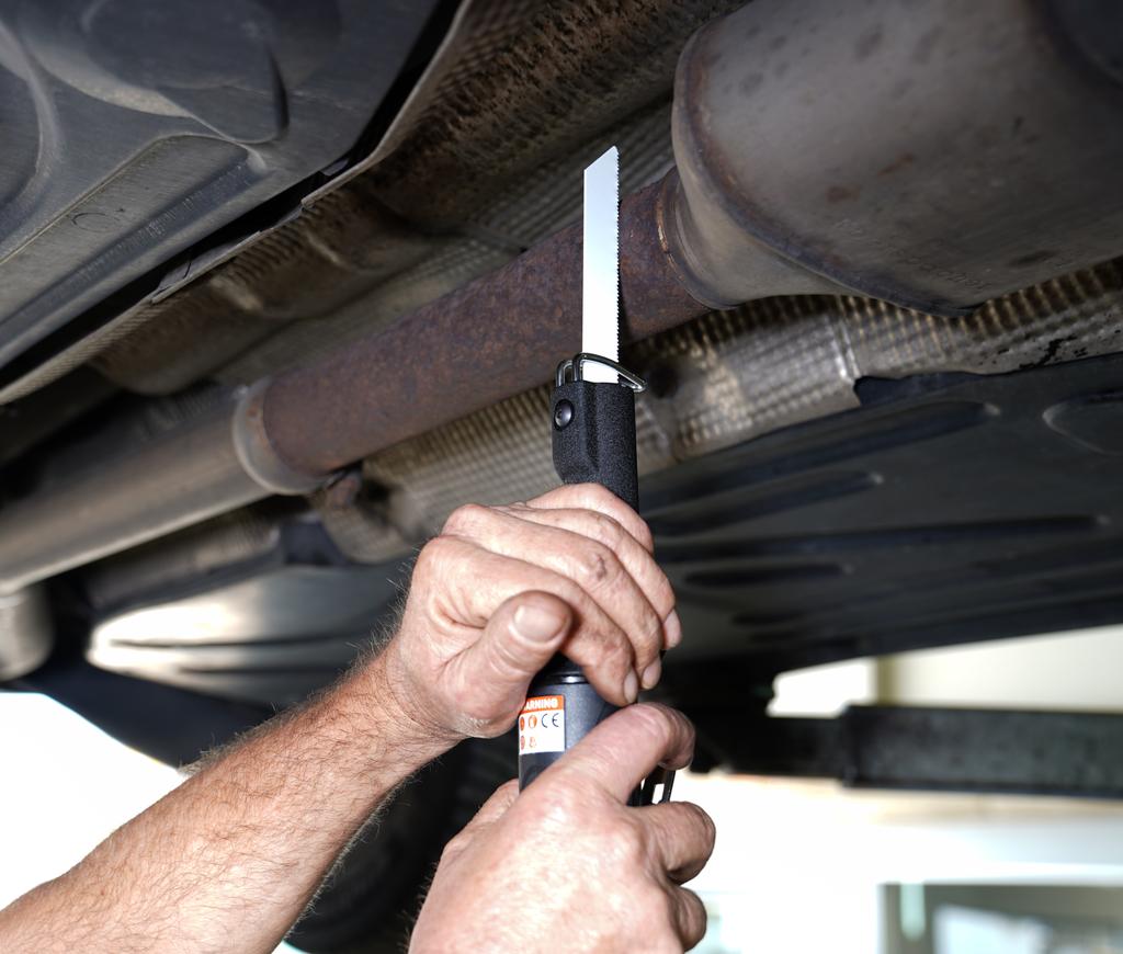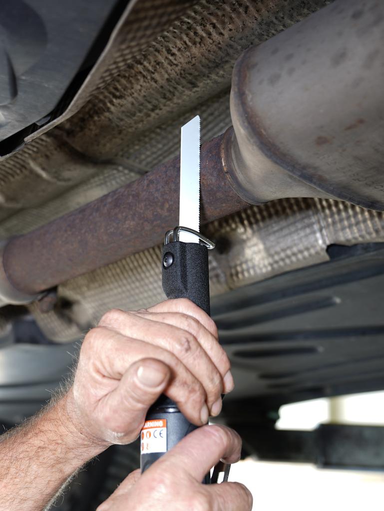 Very powerful air saw with new design. The integrated gear reduces the strokes of the saw and increases the torque at the same time, thus releasing a very high force. The saw blade is mounted by means of a clamping and centring screw. This system allows the insertion of many different saw blade types.