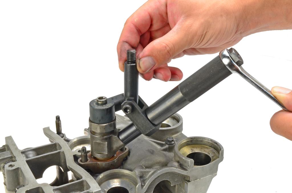 For non-destructive removal of various lightly to moderately seized diesel fuel injectors. Example of use on a BOSCH solenoid-controlled injector: A release lever is screwed onto the rail line connection, allowing the carbon build-up to be broken loose through rotational movement. The slide hammer with joint adapter is then attached, completing the non-destructive removal tool.