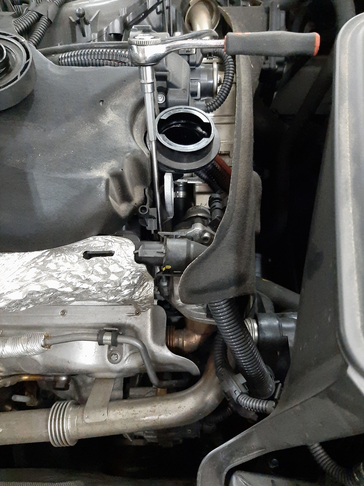 Special socket spannerTXB30 wrench for loosening and tightening the control unit on the AGR cooler valve. The screw connection is very difficult to reach due to the installation position.